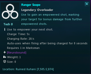 For context, the Hidden Nanite Infusion Device once activated keeps track of all damage the Seer does to that target over a 7 second duration. After 7 seconds, it deals 175% of the damage stored. The problem with the Nanite is that it is a big chunk at the end, which makes it very easy to over kill something all in one go … or to have your entire damage bonus completely mitigated with a blocker. It is very binary, and that’s the part we’re focusing on.