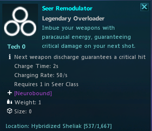 - We have replaced the Nanite Device and the Psionic Jammers with the Seer Remodulator, which guarantees a critical hit every 2 seconds.