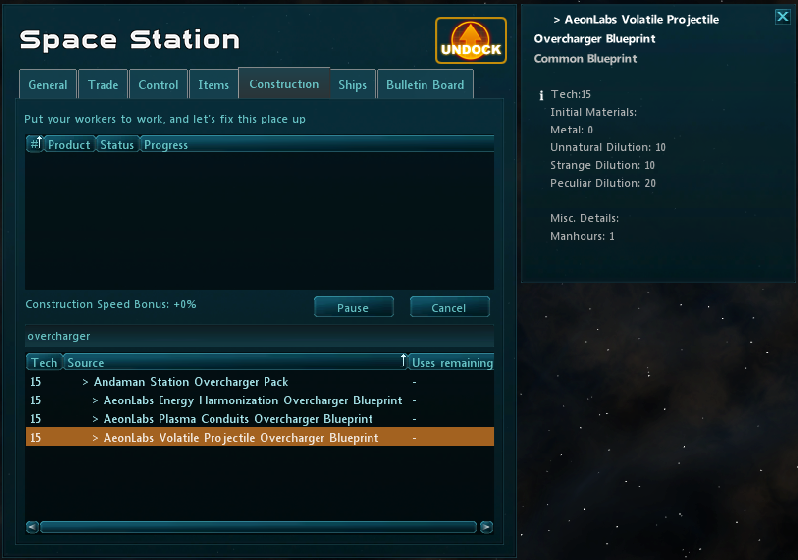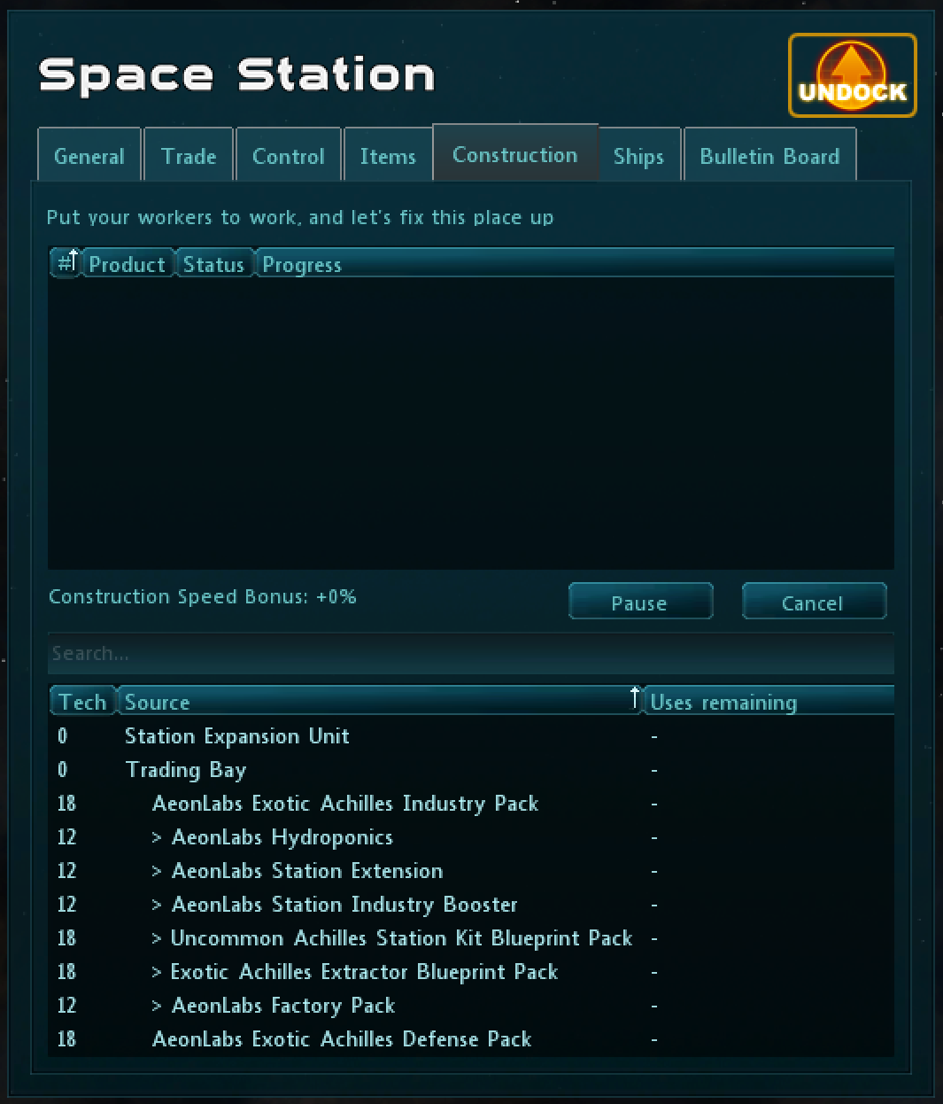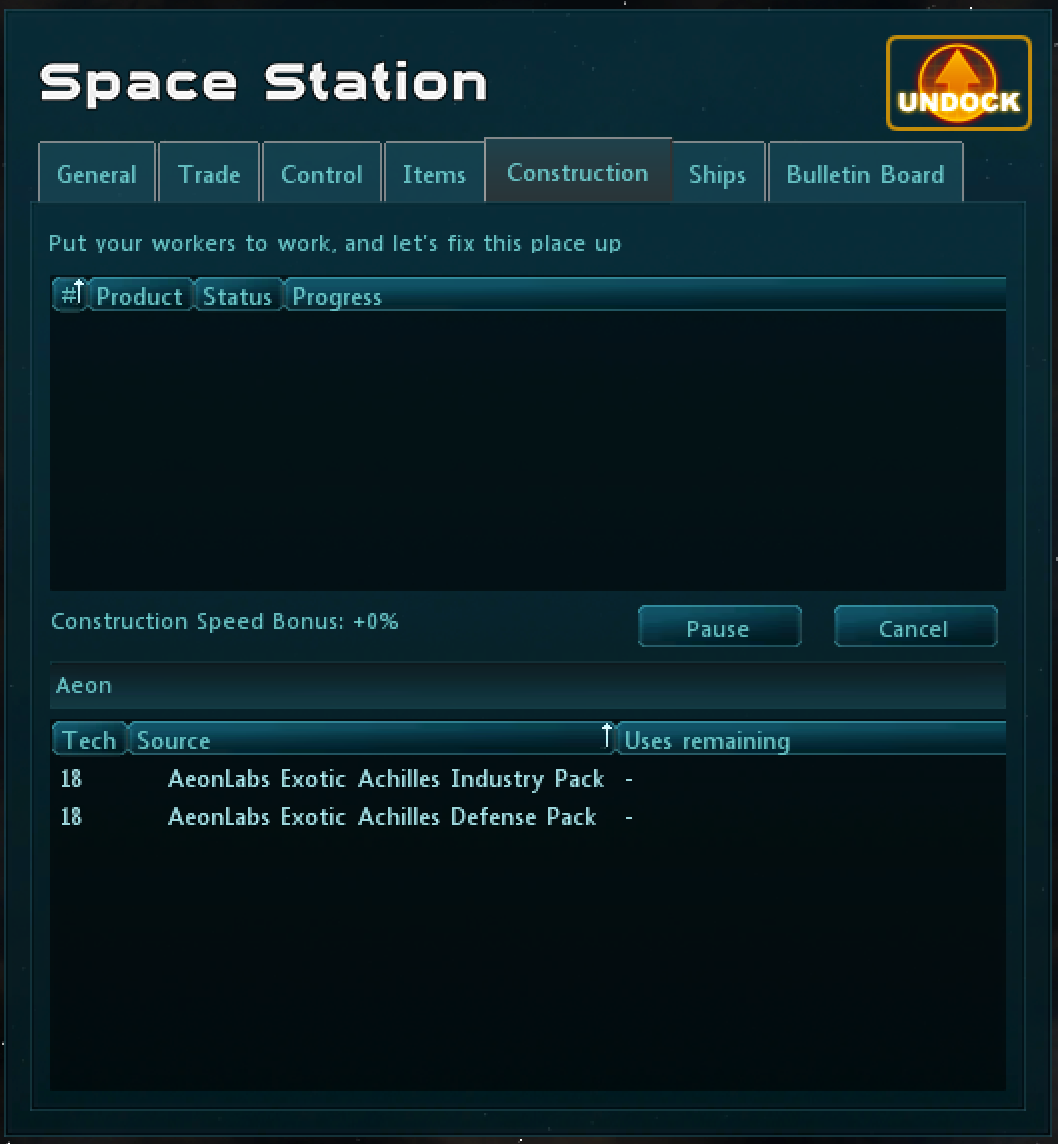 The Dilution system can be used to produce both pre-existing items (like Adamantium Station Kit IX) and newly introduced items (such as AeonLabs Station Extension).