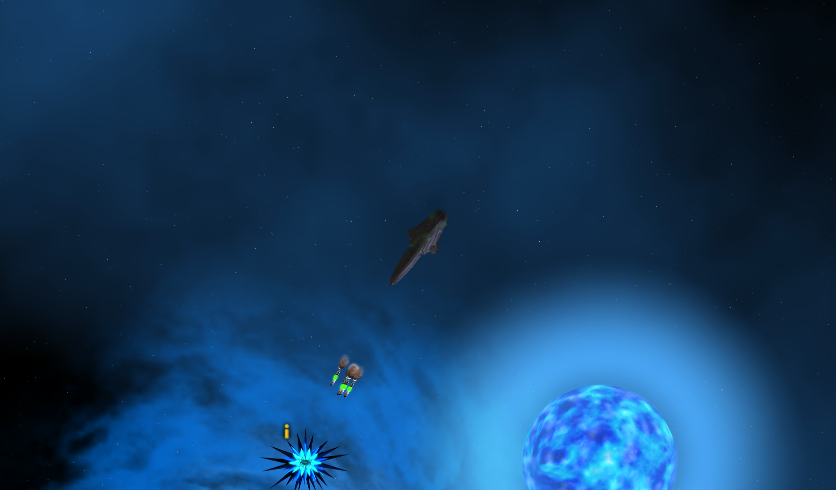 Some of the biggest changes so far are changes to the mission flow. A few months back we added in the ability to start and finishing missions on the fly, without the need to dock at a base. Paired with the mission tracker, this offers a very accessible way to get new players oriented with the game. A lot of the Nexus missions are going to use this. This is because docking after EVERY mission really is kind of boring and a little bit frustrating. Why should you have to go back to the previous galaxy to get a mission to kill guys in the next galaxy? You shouldn’t. With the changes, players are really only ever going to dock when they get a new skill or want to buy an upgrade. This will definitely help us establish a flow through the Nexus that we didn’t have before, and make the entire experience more enjoyable for the player.