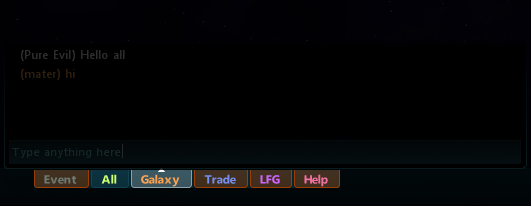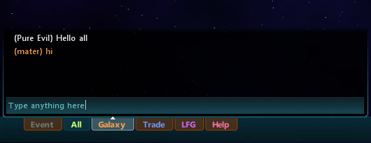 Welcome to the in-game galactic chat tutorial! This will teach you how to use your intergalactic comunicator and all the various functionaility that comes with communicating with other players and in-built systems.