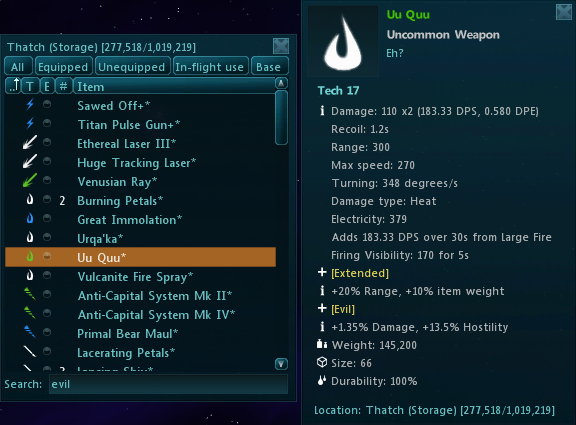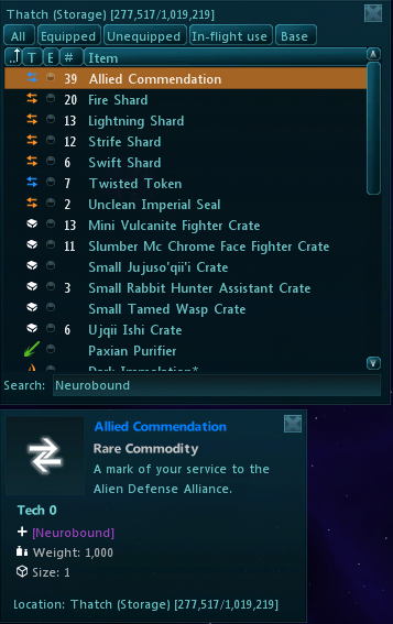 This post will highlight some useful tags that can be searched for at the bottom of your inventory window. This functionality also works for searching in your bases and TSL!