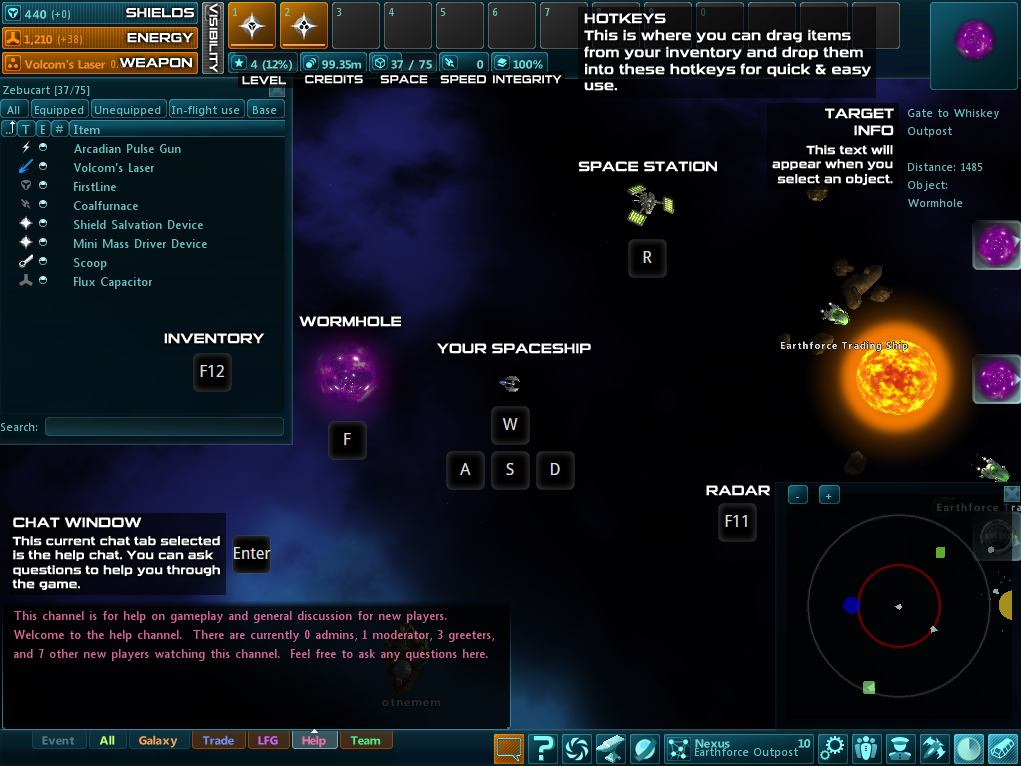 At this very moment, you may be logging into Star Sonata for the very first time, and your head may soon be filled with all sorts of wonderful questions, like 'How do I fly ship?', 'How do I earn money?' and 'Is that a Space Rat?!' These are all perfectly valid questions, so let us get right into it with the basics, such as the controls and user interface elements. Here's a quick shakedown of the controls detailed below:- Keys