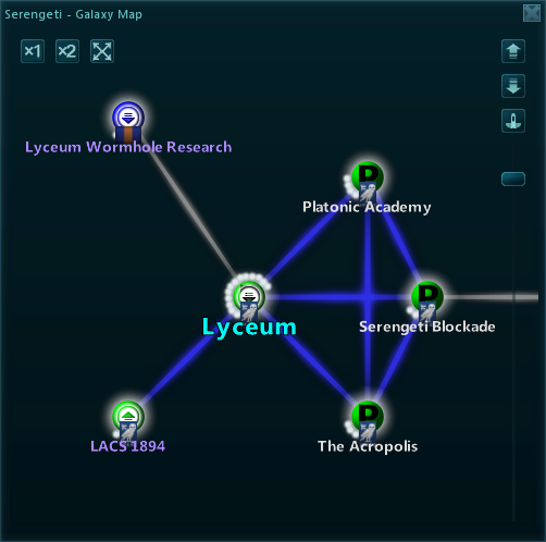 - Whilst scrolling the mouse within the universe map dialogue this will zoom in and out the view of the universe.
