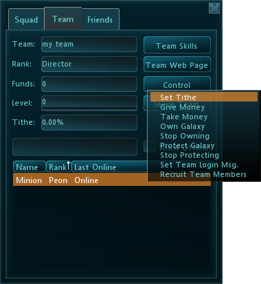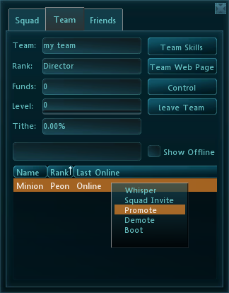 When the Director leaves the team, the next highest-ranking player becomes the new Director.Team Tithing