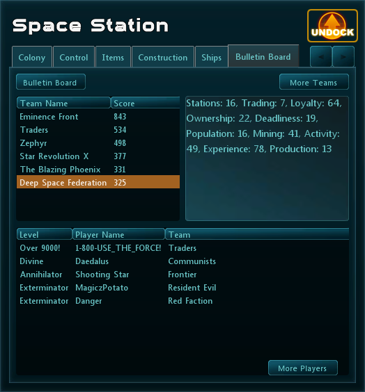 Player teams are ranked. When you dock, you can see the relative rankings of all teams.