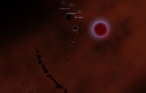 • Once you're inside the system, the asteroid field acts as a great anchor point to tractor yourself around, so you can use the asteroids and planets to move around with.