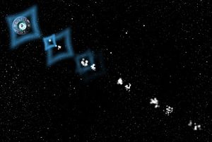It requires 500 energy and charges at 25.0 energy/second, it creates 3x Flits which happen one after the other. A flit is a warp that at maximum teleports you about 266 distance in a direction (so 3 flits will send you 800 distance away). The amount of distance that it sends you in can be manipulated as well as the direction while the device is active. The device also activates a tweak that boosts damage and lowers resists for a short amount of time.