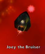 Joey the Bruiser is a level 15 Uber AI located in the Nexus. Joey will assist you when you are attacking AI in the galaxy. His Outlaw's Volcom is a very dangerous ship, you can find Joey shooting star runner traders.
